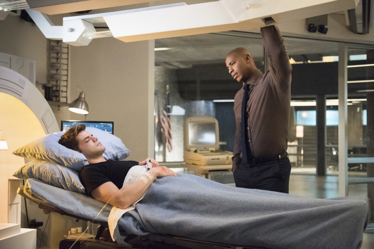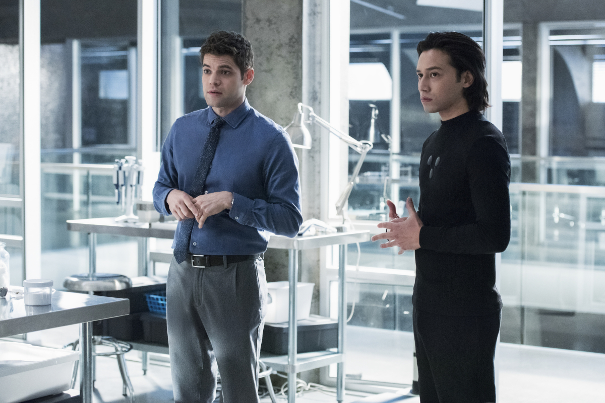 The most interesting thing may be in the second to last photo below that shows Winn (Jeremy Jordan) standing with Brainiac 5 (Jesse Rath), but his look has changed quite drastically including more natural-looking hair and skin color.