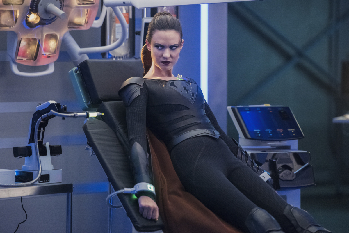 The first image tells us that the team subdues Reign in the next episode and not only has her back at L Corp, but it looks like they're using kryptonite to secure her. Also, Mon-El is still around, meaning he didn't leave with the Legion. Most of these images take place in the lab or a few with James (Mehcad Brooks), but none seem to touch on what appears to be the main story, one of Coville's disciples running off with the journal that might help Supergirl (Melissa Benoist).