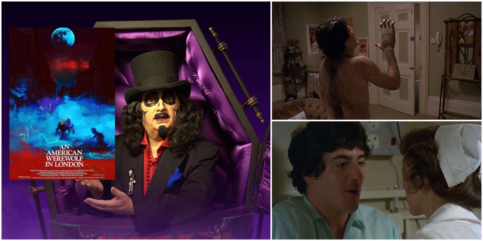 Svengoolie (aka Rich Koz) and the House of Svengoolie (Sarah Palmer's gorgeous ghoul Gwengoolie, Scott Gryder's devilishly ingratiating IMP (Ignatius Malvolio Prankerstein), and Bill Leff's the 800-year-old vampire Nostalgiaferatoo) are back to fill your Saturday night with humor and horror (or "horror and humor," depending on what you prefer). Kicking off at 8 pm ET/7 pm CT on MeTV, Svengoolie rolls out a screening of writer/director John Landis's An American Werewolf in London. The 1981 horror film classic starred David Naughton, Jenny Agutter, Griffin Dunne, and John Woodvine – but the biggest star was makeup artist Rick Baker's groundbreaking werewolf transformation – work that's still honored to this day.