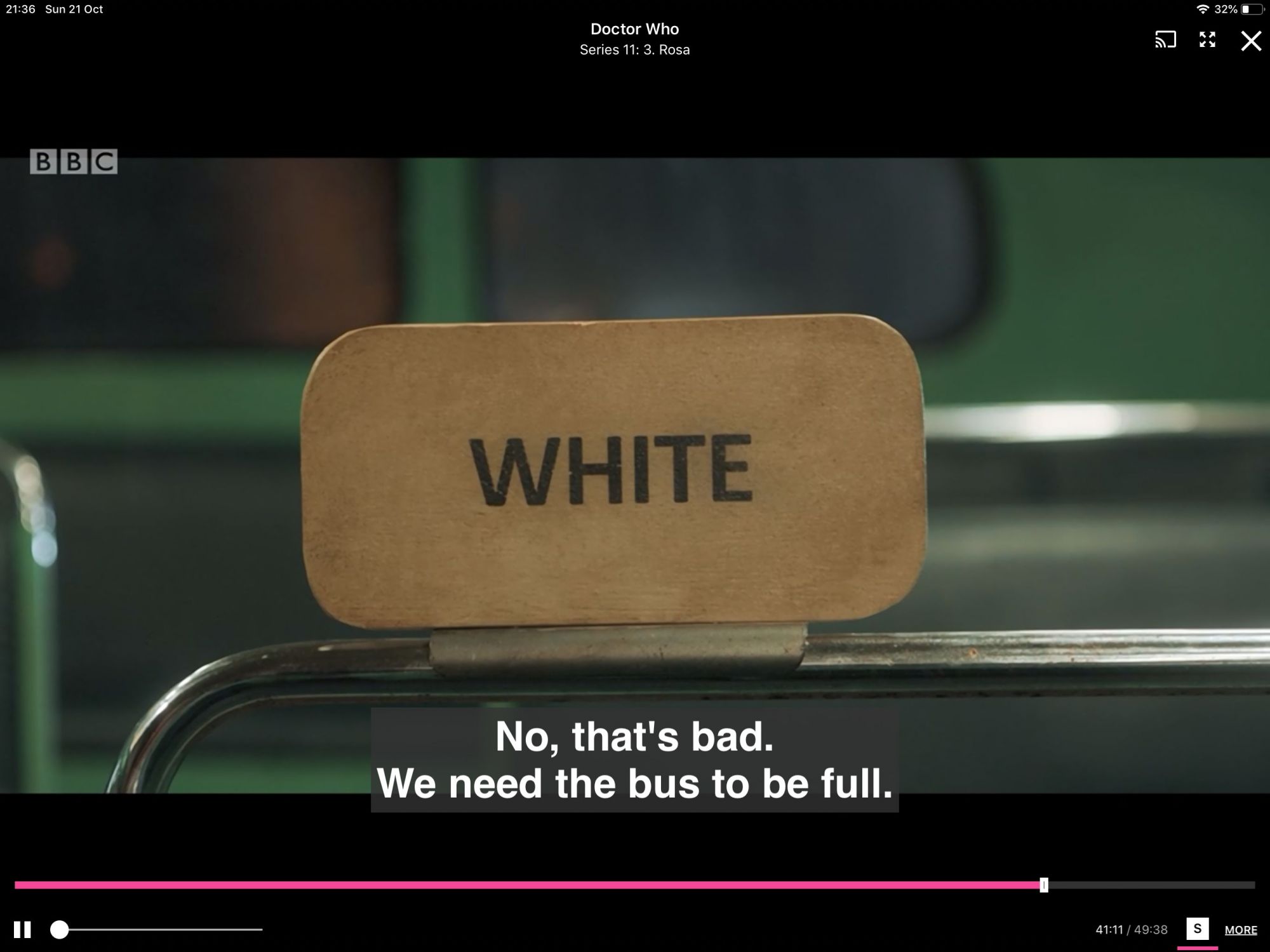 The best line had to be from Ryan. Rosa Parks – the first black woman to drive a bus. As much as the episode made mecry, that gave me a proper laugh, encapsulating so much about how we remember history through school lessons, something divorced and far away that gets mixed up in the head – and now right here, playing out in real life.