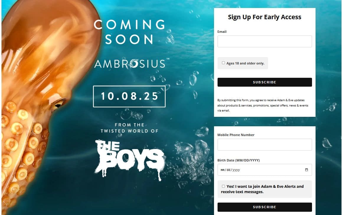 Just so there's no confusion? This isn't a joke – seriously. If you head on over to the Adam & Eve website, you can sign up for early access so you can get your hands (and various other body parts) on it when it drops on October 8th:
