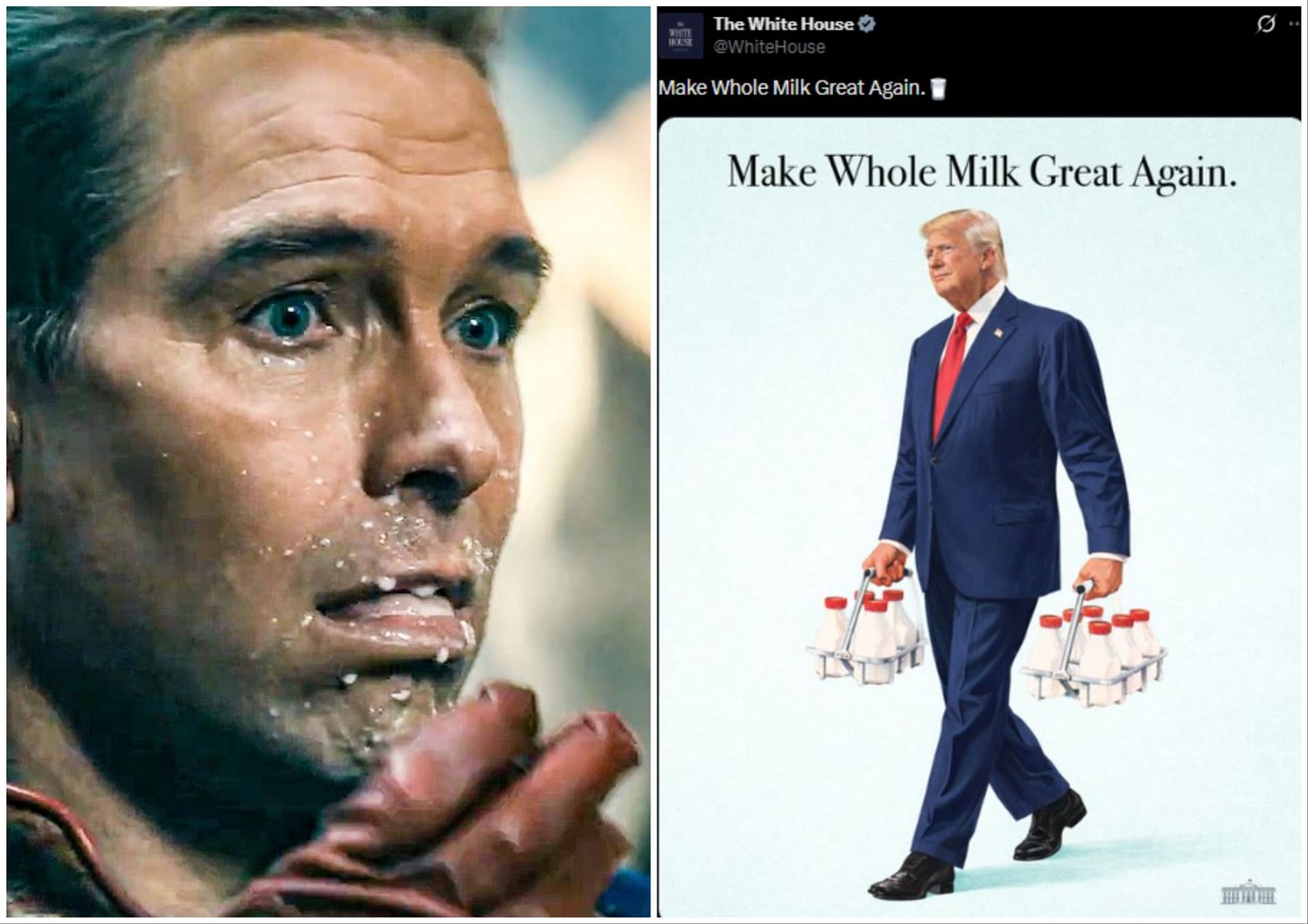 Okay! We get it! Enough already! It's pretty clear at this point that the real world and the world of Prime Video and Showrunner Eric Kripke's The Boys are connected in some way that modern science couldn't even begin to understand. The lines between the two were blurred a long time ago, and now they're pretty much gone. This week served up another example, with Donald Trump signing a bill that would see whole and 2% milk return to school cafeterias. "Whether you're a Democrat or a Republican, whole milk is a great thing," Trump shared during the singing press opp. As a follow-up, Trump's White House posted an image of Trump as a milkman, with the tagline, "Make Whole Milk Great Again." At this point, if you're not seeing the eerie connection, we're not sure which "The Boys" you've been watching.