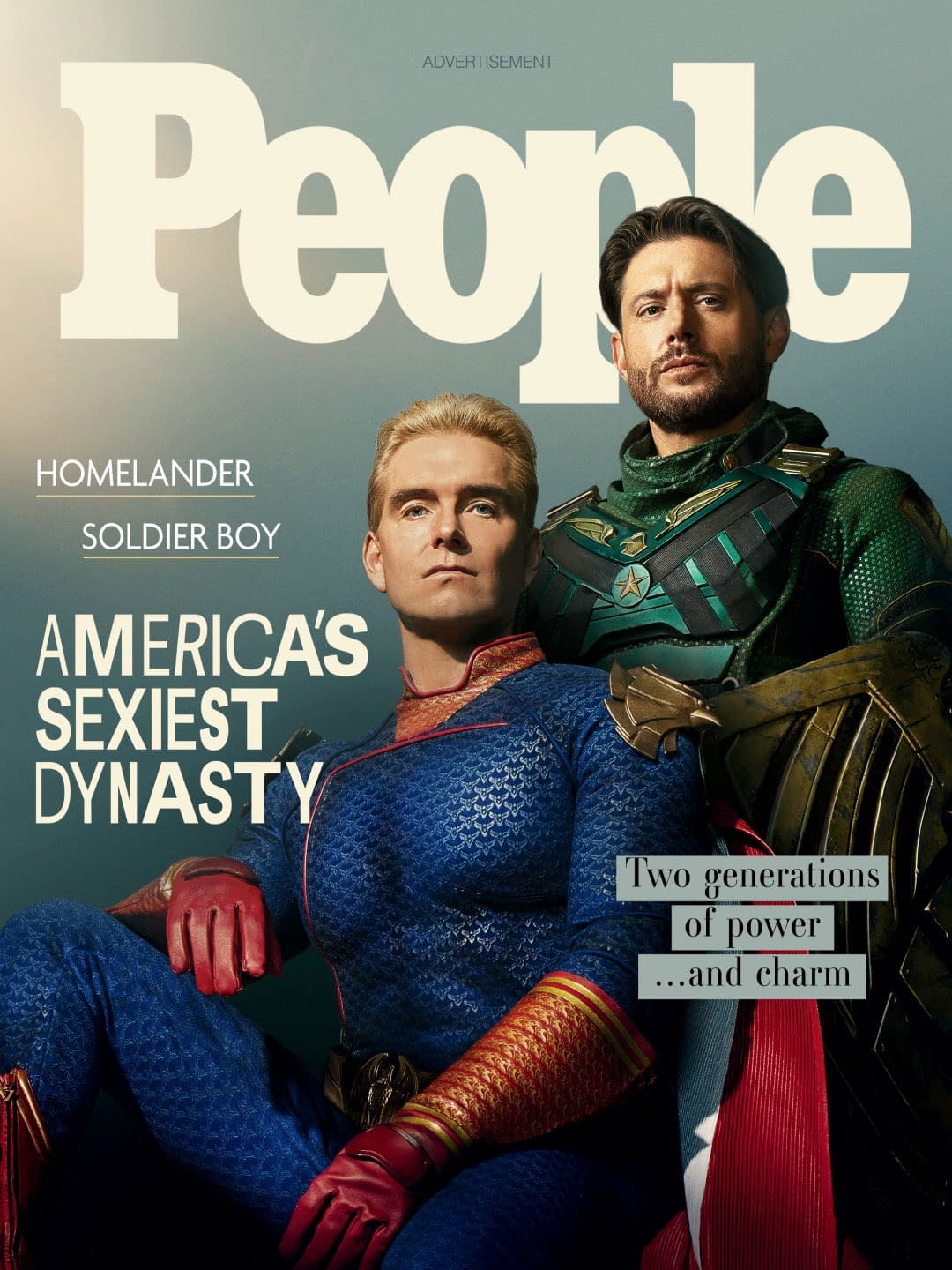 [PEOPLE] couldn't choose just one for their cover. Introducing a completely new category – America's Sexiest Dynasty. Not since Kirk and Michael Douglas have we seen such sizzling Father-Son hunks!" read the press release from Vought, which included a look at the cover to PEOPLE that spotlights Homelander and Soldier Boy in a way that… looks cold, emotionless, and that it was photoshopped?