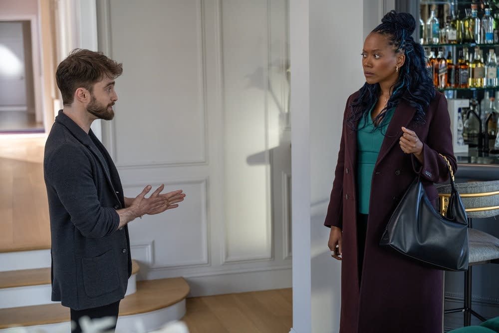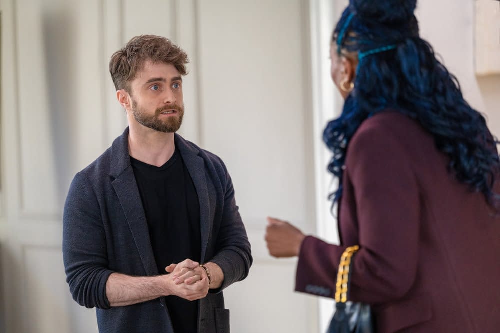 - "Pilot" Episode 101 — Pictured: (l-r) Precious Way as Brina, Daniel Radcliffe as Arthur Tobin — (Photo by: Scott Gries/NBC)