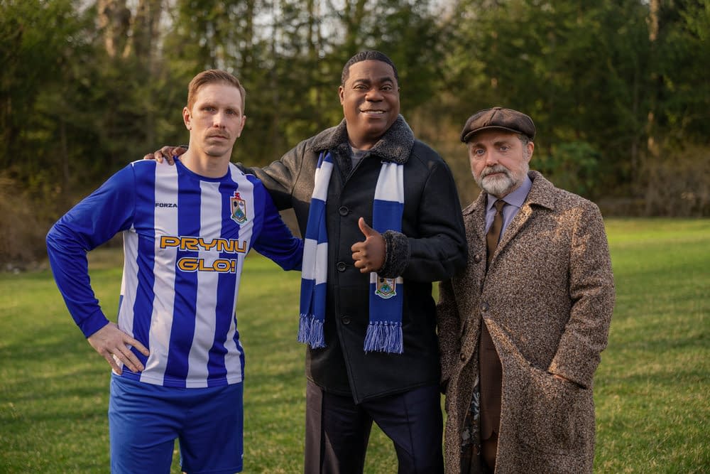 - "Pilot" Episode 101 — Pictured: (l-r) Justin Lauro as Welsh Soccer player, Tracy Morgan as Reggie Dinkins, Jeff Richmond as Welsh Soccer Manager — (Photo by: Scott Gries/NBC)
