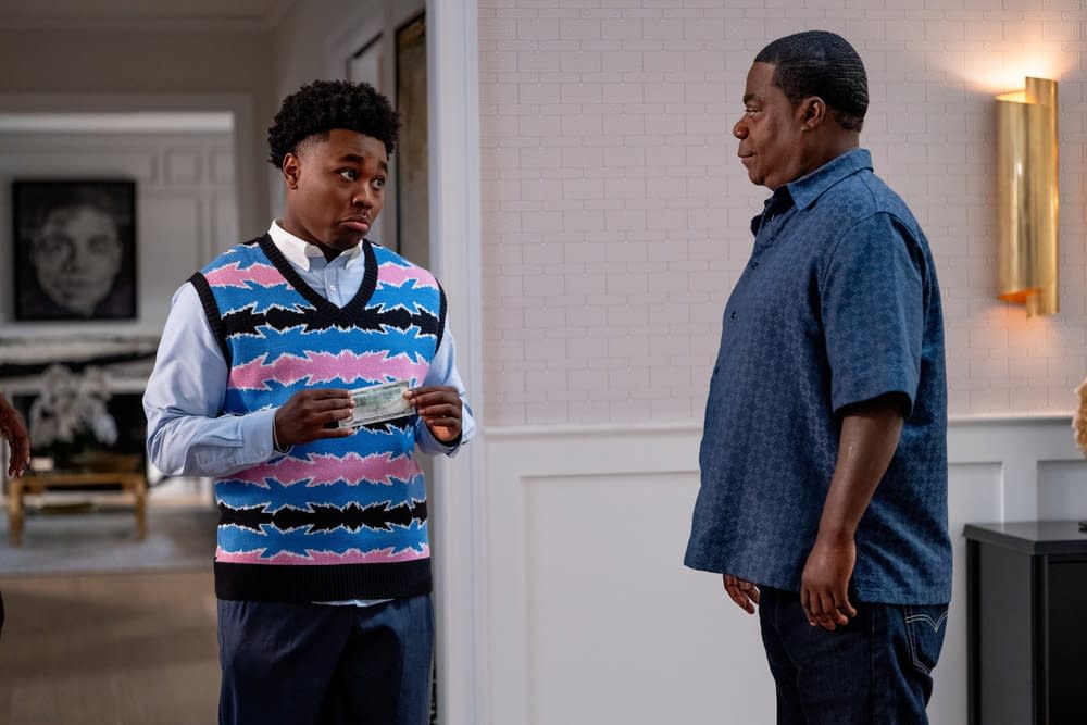 - "Nittany Means Big" Episode 102 — Pictured: (l-r) Jalyn Hall as Carmelo, Tracy Morgan as Reggie Dinkins — (Photo by: Scott Gries/NBC)
