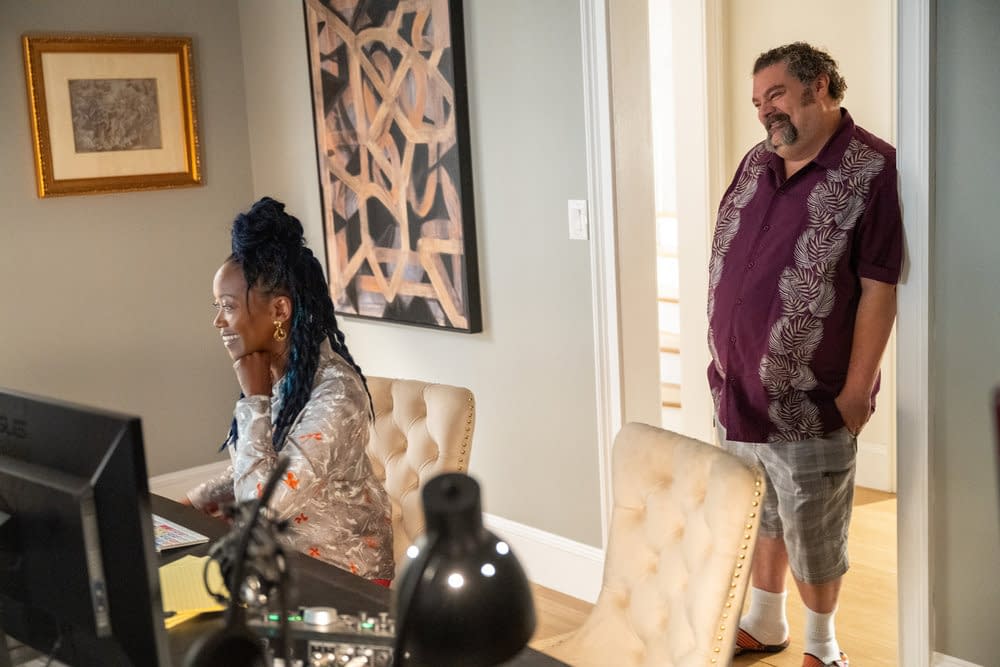 - "Save the Cat" Episode 104 — Pictured: (l-r) Erika Alexander as Monica, Bobby Moynihan as Rusty Boyd — (Photo by: Scott Gries/NBC)