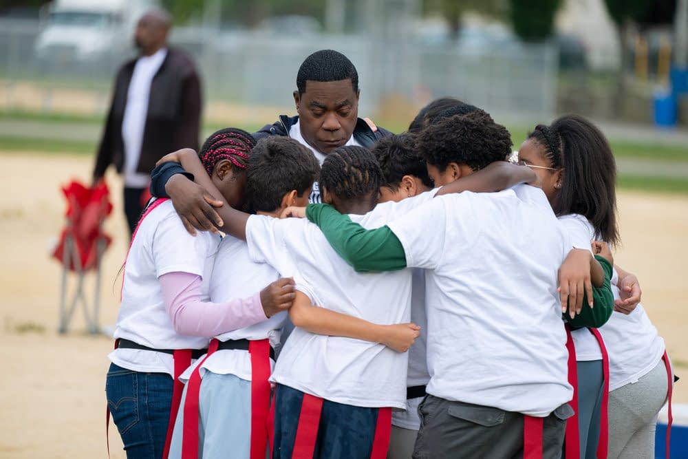 Tonight's episode of NBC and Showrunners Robert Carlock and Sam Means' Tracy Morgan and Daniel Radcliffe-starring The Fall and Rise of Reggie Dinkins has some big-time talent on tap for tonight's episode: S01E05: "You May Hug Your Hero." When Reggie (Morgan) and Monica (Erika Alexander) restart their football camp for kids, they wind up in the crosshairs of their old rivals, Jerry and Tisha Basmati (Craig Robinson, Heidi Gardner). Meanwhile, Arthur (Radcliffe) catches the eye of Megan Thee Stallion's Denise. See what we mean? With that in mind, we have the official overview, images, trailer, and sneak peek for tonight's episode: