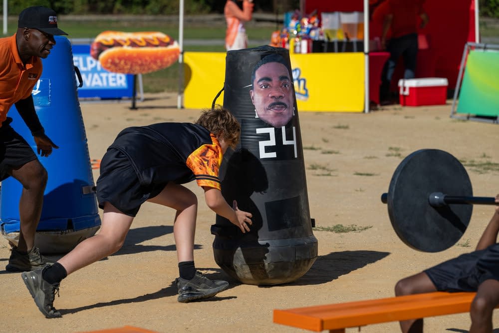 - "You May Hug Your Hero" Episode 105 — Pictured: Jerry Basmati's All-Star Football Camp — (Photo by: Scott Gries/NBC)