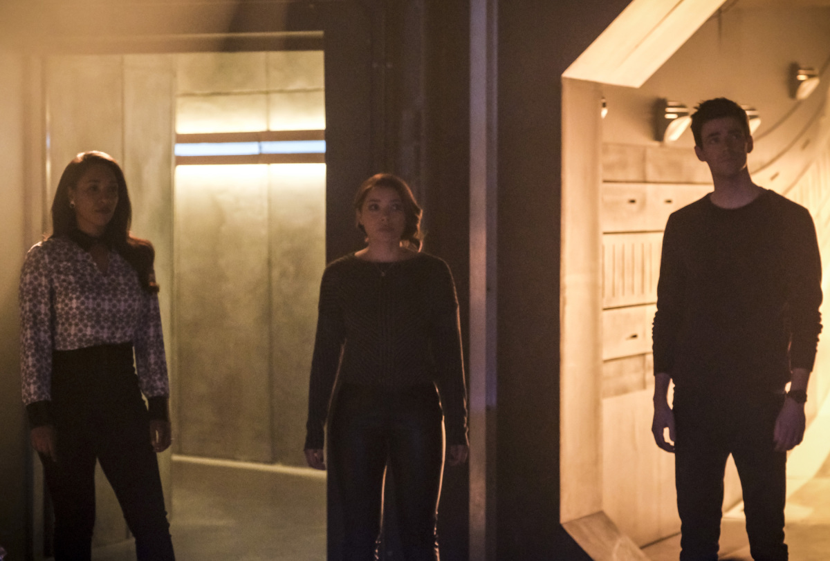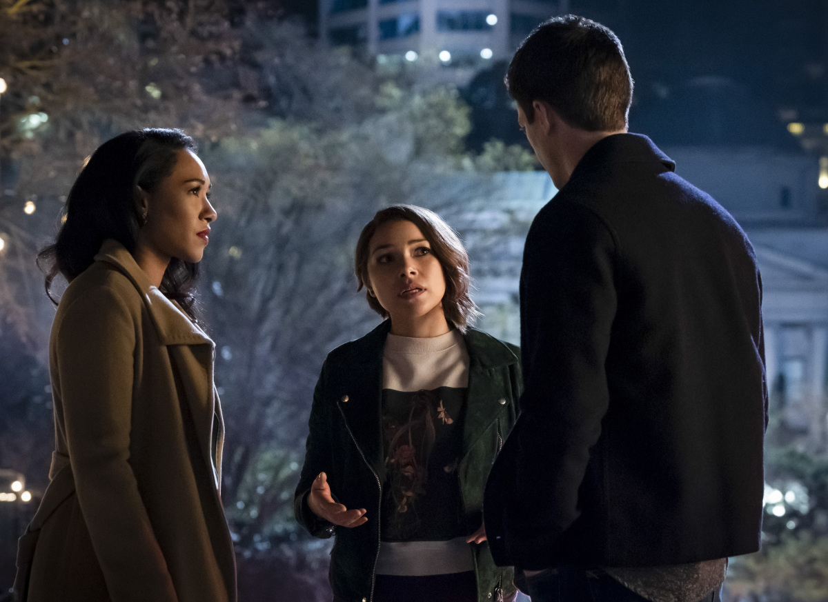 - The Flash — "The Girl with The Red Lightning" — Image Number: FLA521b_0113b.jpg — Pictured (L-R): Candice Patton as Iris West – Allen, Jessica Parker Kennedy as Nora and Grant Gustin as Barry Allen — Photo: Jeff Weddell/The CW — é 2019 The CW Network, LLC. All rights reserved