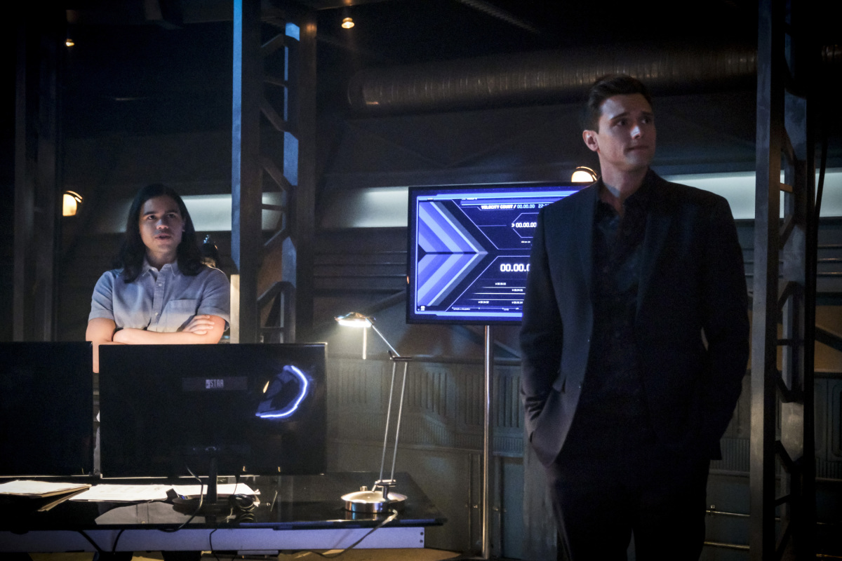 - The Flash — "The Girl with The Red Lightning" — Image Number: FLA521b_0177b.jpg — Pictured (L-R): Carlos Valdes as Cisco Ramon and Hartley Sawyer as Dibney — Photo: Jeff Weddell/The CW — é 2019 The CW Network, LLC. All rights reserved