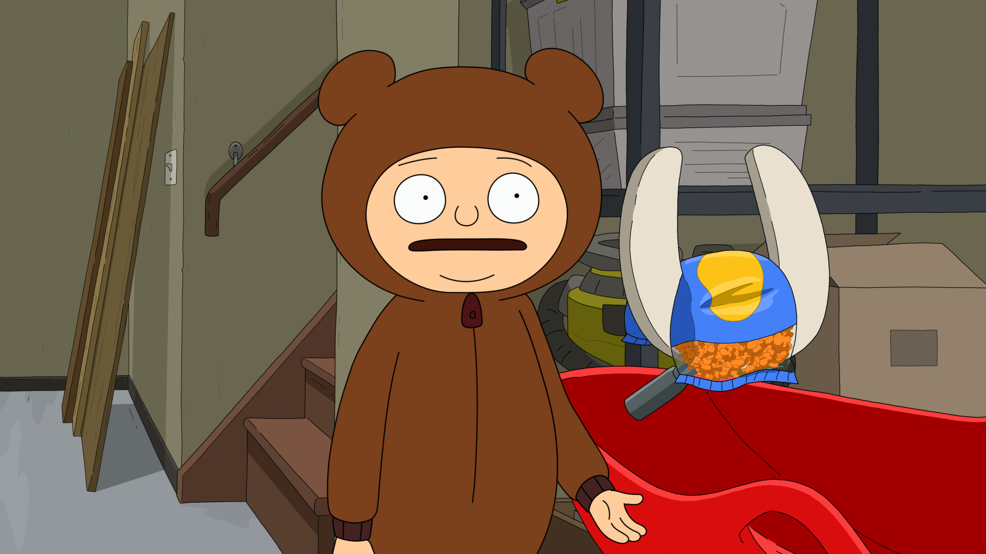 We started by seeing Moon attempt to find a place with friends as they hang out while their moms are busy together in a moms group. But what caught me right away was the hilarious and incredible puns coming forth from Wolf's mouth as he found a random oven mitt in weird places all over the Tobin household. Whoever wrote the lines he says, like "Hamburger help me!" and "Honey Bunches of Scrotes!", deserves all the praise because it's a pure absurd joy to hear them. Beef Tobin attempts to find a place for himself in his time with the mom group that Moon sort of pushed him into at the last minute.