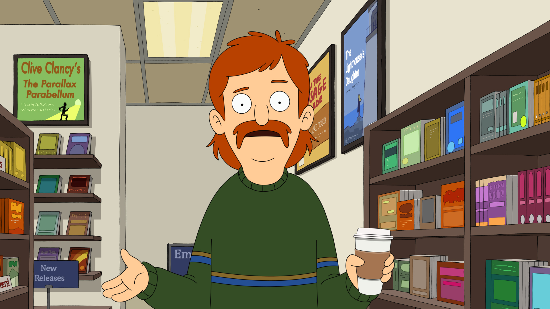 The Great North included a fantastic appearance of a guest character, Wade voiced by Olyphant. Wolf and Honeybee witnessed the appearance of Wade while strolling through the mall and I loved their devotion when describing this man to their family at home.