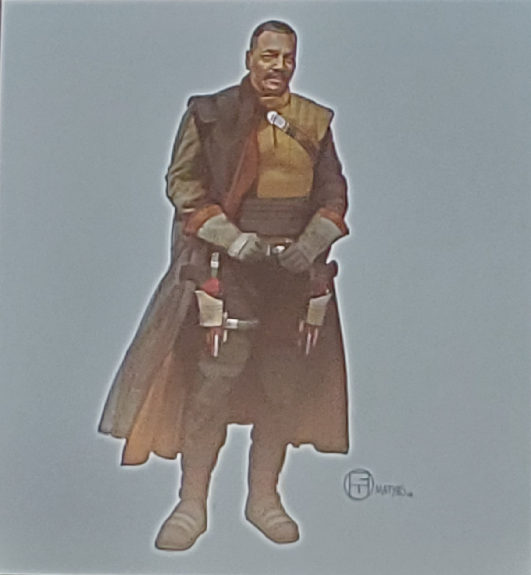The panel kicked off and we got a lot of new information, including some first-looks at various characters – including The Mandalorian played by Pedro Pascal, Kara Dune [sp?] played by Gina Carano, and Grief Carga [sp?] played by Carl Weathers.