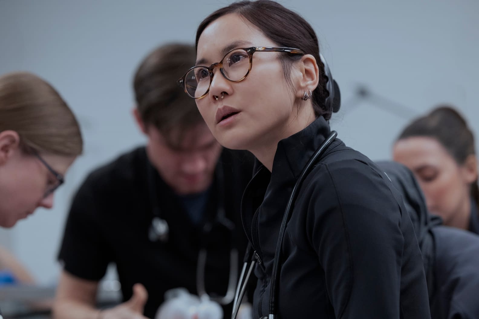 Starring Wyle as Dr. Michael "Robby" Robinavitch, the critically acclaimed series offers a realistic examination of the challenges facing healthcare workers in today's America, as seen through the lens of frontline heroes working in a modern-day hospital in Pittsburgh. Each episode follows an hour of Dr. Robby's (Wyle) 15-hour shift as the chief attendant in Pittsburgh Trauma Medical Center's emergency department. Tracy Ifeachor (Dr. Collins), Patrick Ball (Dr. Langdon), Katherine LaNasa (Dana Evans), Supriya Ganesh (Dr. Mohan), Fiona Dourif (Dr. McKay), Taylor Dearden (Dr. King), Isa Briones (Dr. Santos), Gerran Howell (Dennis Whitaker), and Shabana Azeez (Victoria Javadi) also starred in the first season.