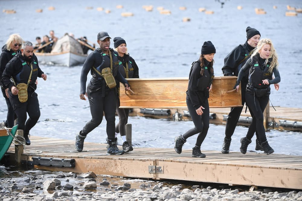 - The Death Conga" Episode 402 — Pictured: (l-r) Monét X Change, Rob Cesternino, Ron Funches, Kristen Kish, Stephen Colletti — (Photo by: Euan Cherry/Peacock)