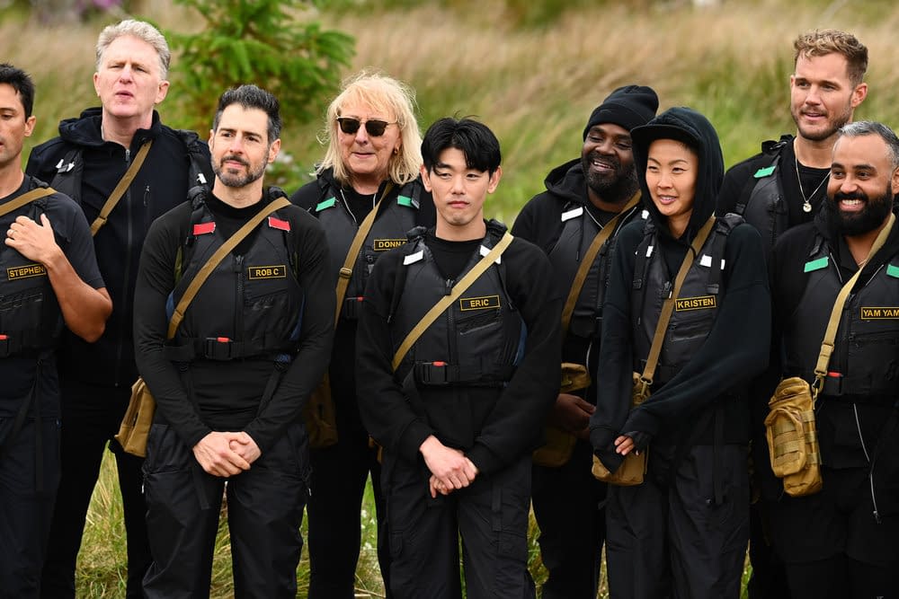- "Let the Cards Fall as they Will" Episode 401 — Pictured: (l-r) Michael Rapaport, Rob Cesternino, Donna Kelce, Eric Nam, Ron Funches, Kristen Kish, Colton Underwood, Yam Yam Arocho — (Photo by: Euan Cherry/Peacock)