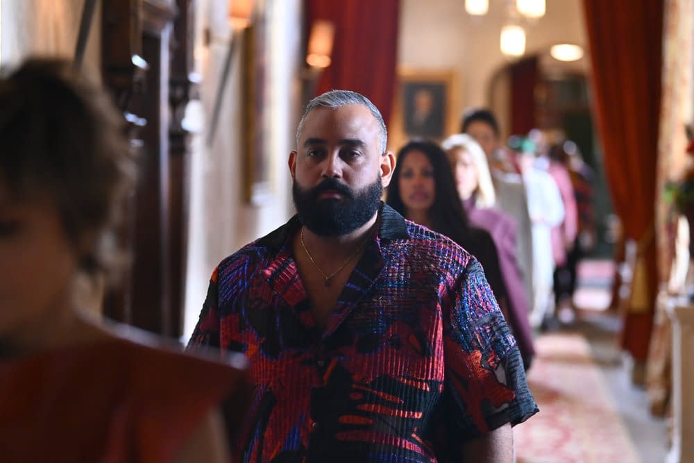 - The Death Conga" Episode 402 — Pictured: (l-r) Stephen Colletti, Monét X Change, Maura Higgins, Yamil "Yam Yam" Arocho, Ron Funches, Dorinda Medley, Rob Cesternino, Tiffany Mitchell, Eric Nam, Donna Kelce, Caroline Stanbury — (Photo by: Euan Cherry/Peacock)