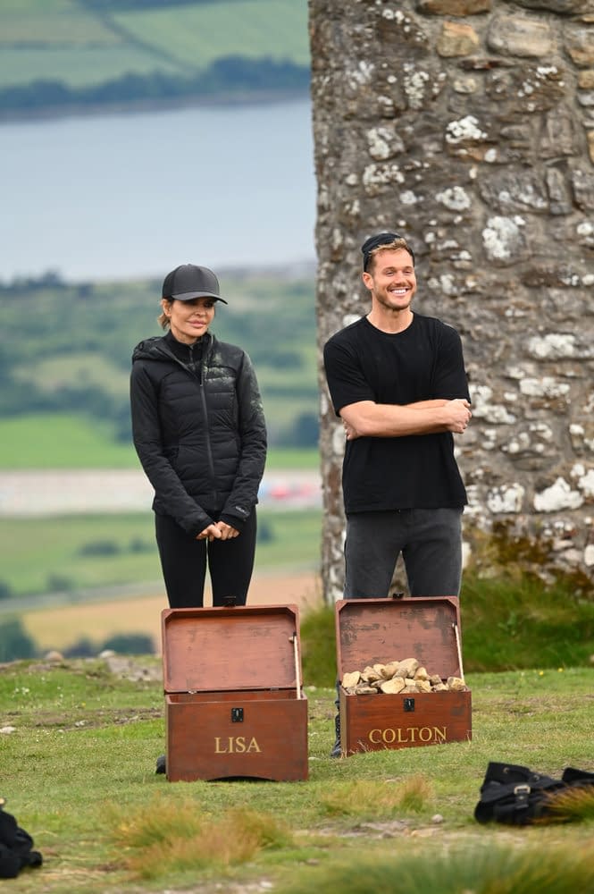 - "The Black Banquet" Episode 407 — Pictured: (l-r) Lisa Rinna, Colton Underwood — (Photo by: Euan Cherry/PEACOCK)