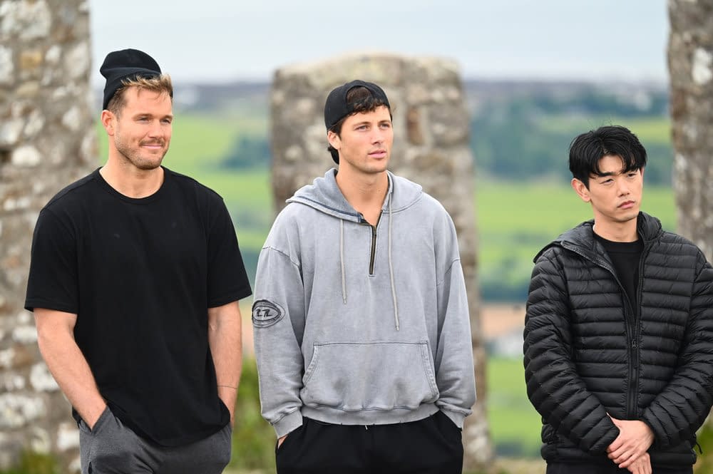 - "The Black Banquet" Episode 407 — Pictured: (l-r) Colton Underwood, Rob Rausch, Eric Nam — (Photo by: Euan Cherry/PEACOCK)