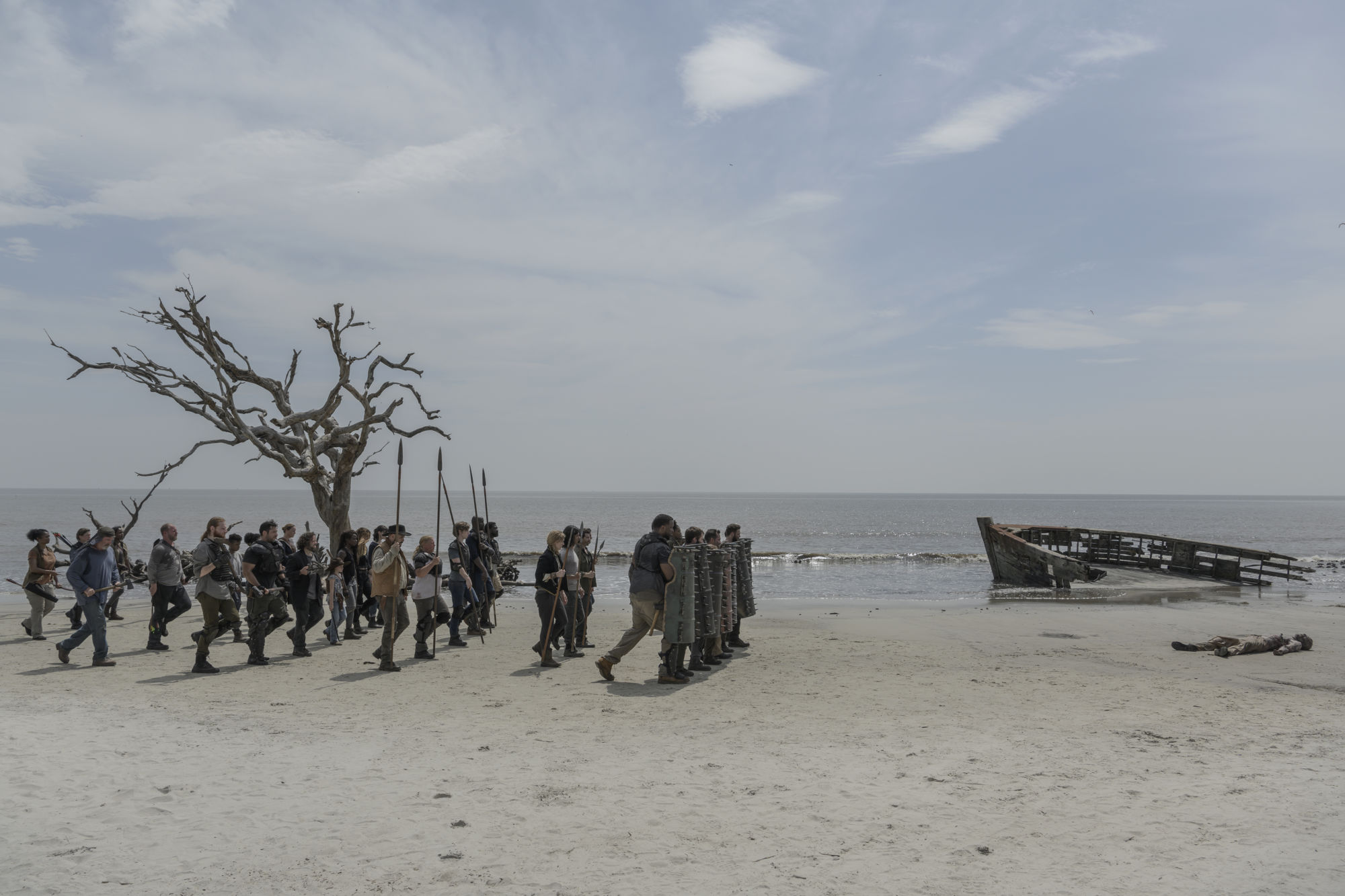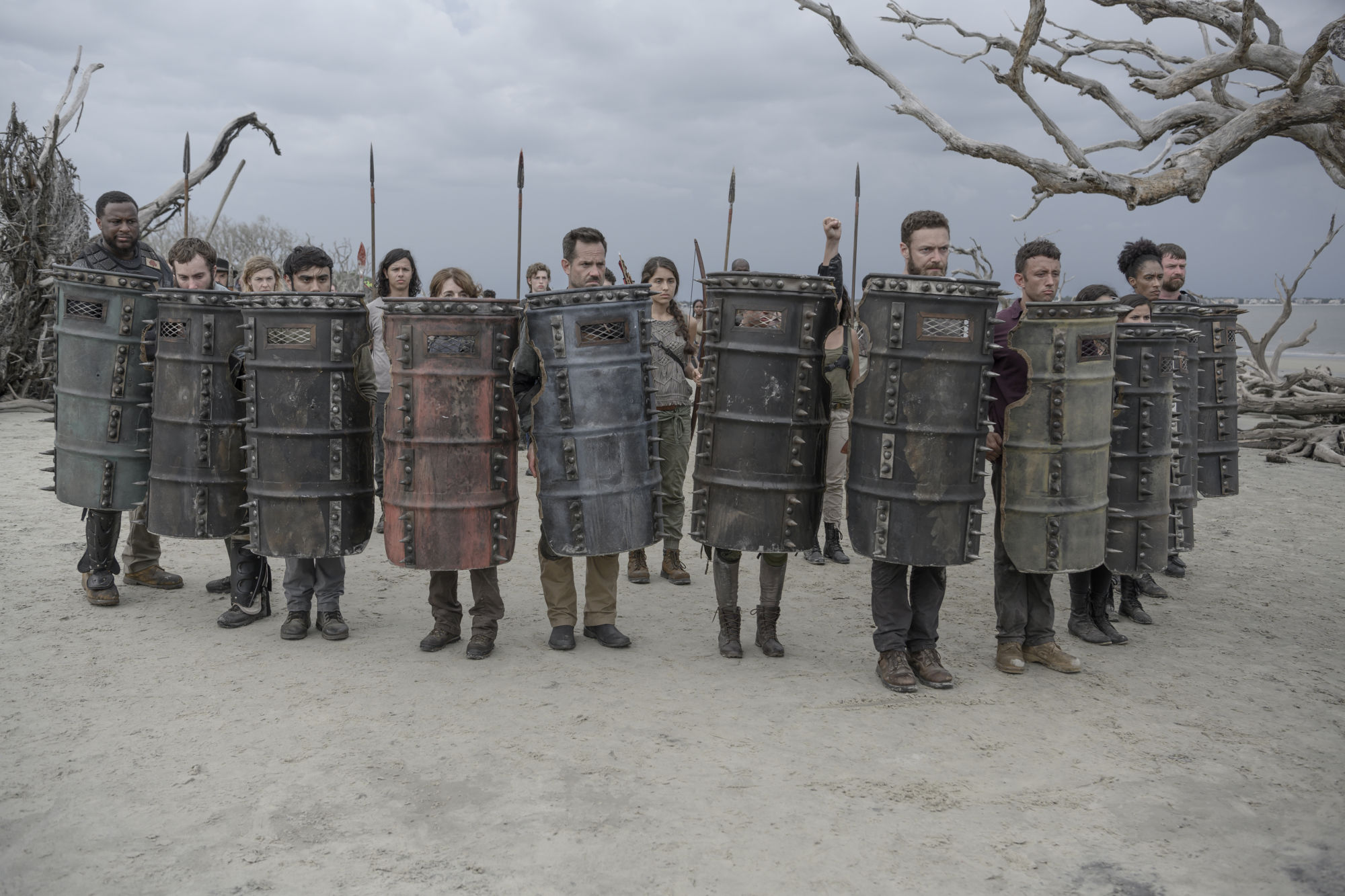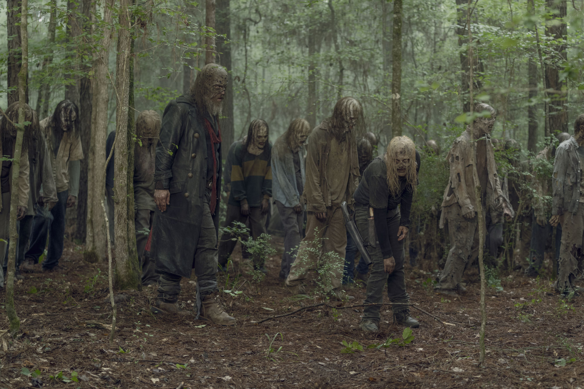 - Norman Reedus as Daryl Dixon, Sydney Park as Cyndie; group – The Walking Dead _ Season 10, Episode 1 – Photo Credit: Jackson Lee Davis/AMC