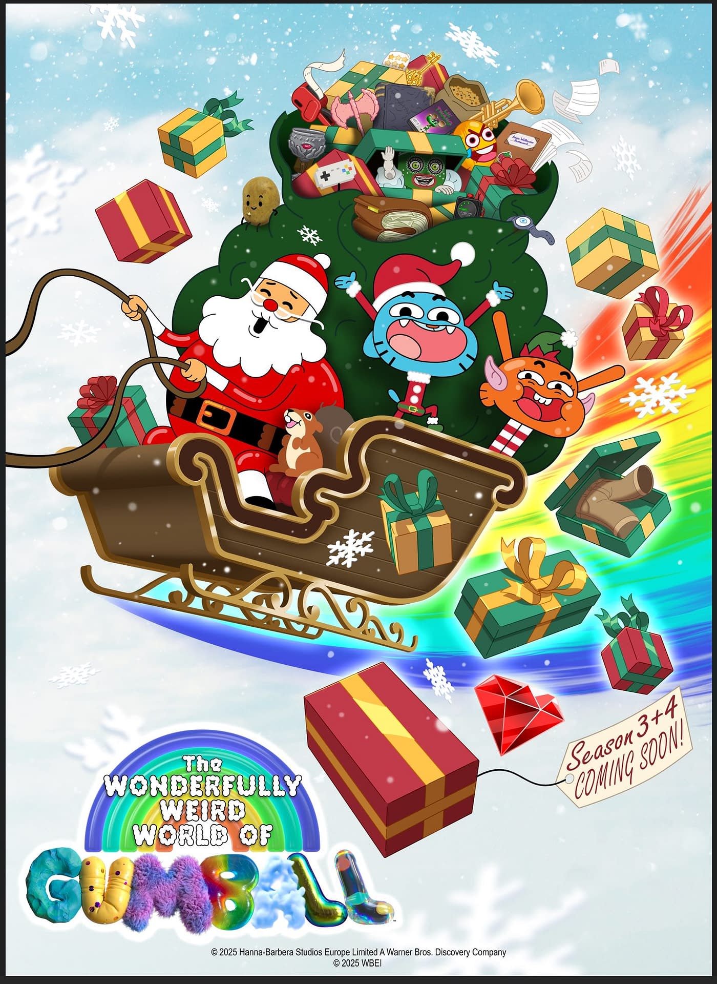 With only four days to go until the second season of Ben Bocquelet's The Wonderfully Weird World of Gumball hits Hulu and Hulu on Disney+ screens, we've got some good news to pass along. Not only do we have an easter egg-filled Christmas key art poster to pass along (double the holiday fun), but that same key art poster also announced that the animated series would be returning for Seasons 3 and 4 (and that they're "coming soon").