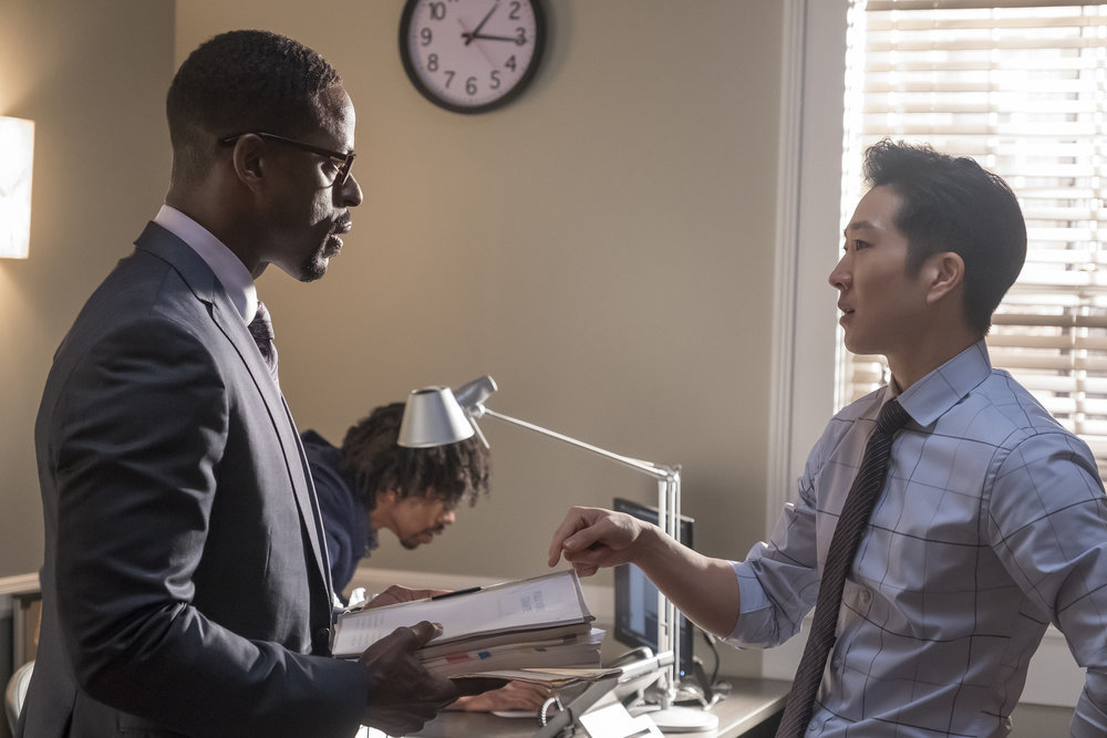 - THIS IS US — "Don't Take My Sunshine Away" Episode 316 — Pictured: (l-r) Sterling K. Brown as Randall Pearson, Tim Jo as Jae-won Yoo — (Photo by: Ron Batzdorff/NBC)
