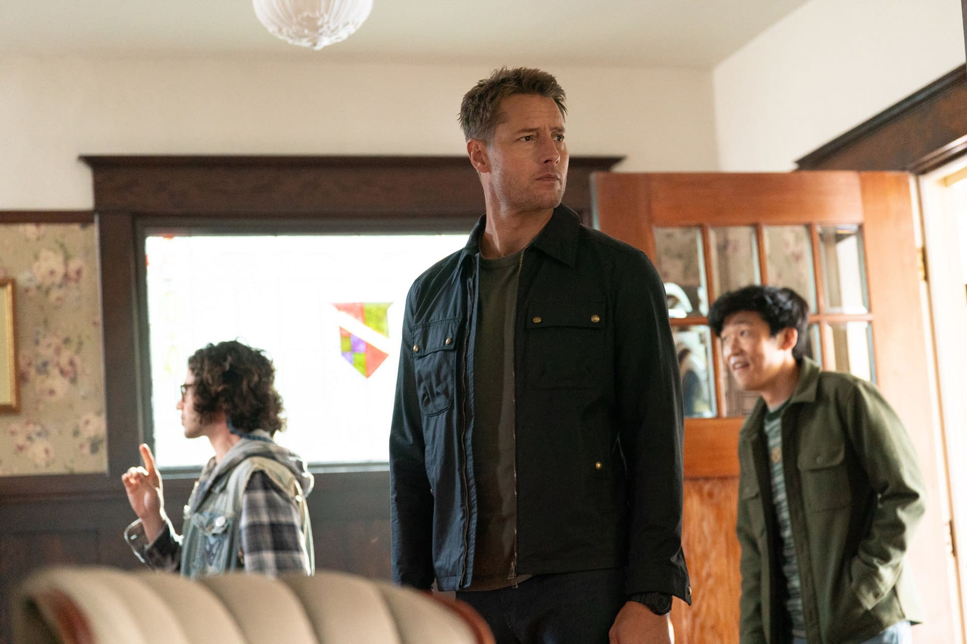 - Pictured: Connor Paolo as Gunther, Justin Hartley as Colter Shaw and Jay Lee as Eddie. Photo: Darko Sikman/CBS ©2025 CBS Broadcasting, Inc. All Rights Reserved.